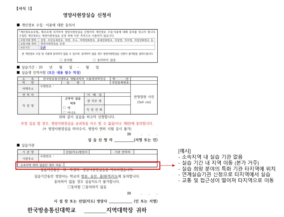 - 「영양사현장실습 신청서」 : 모든 학생 필수 작성